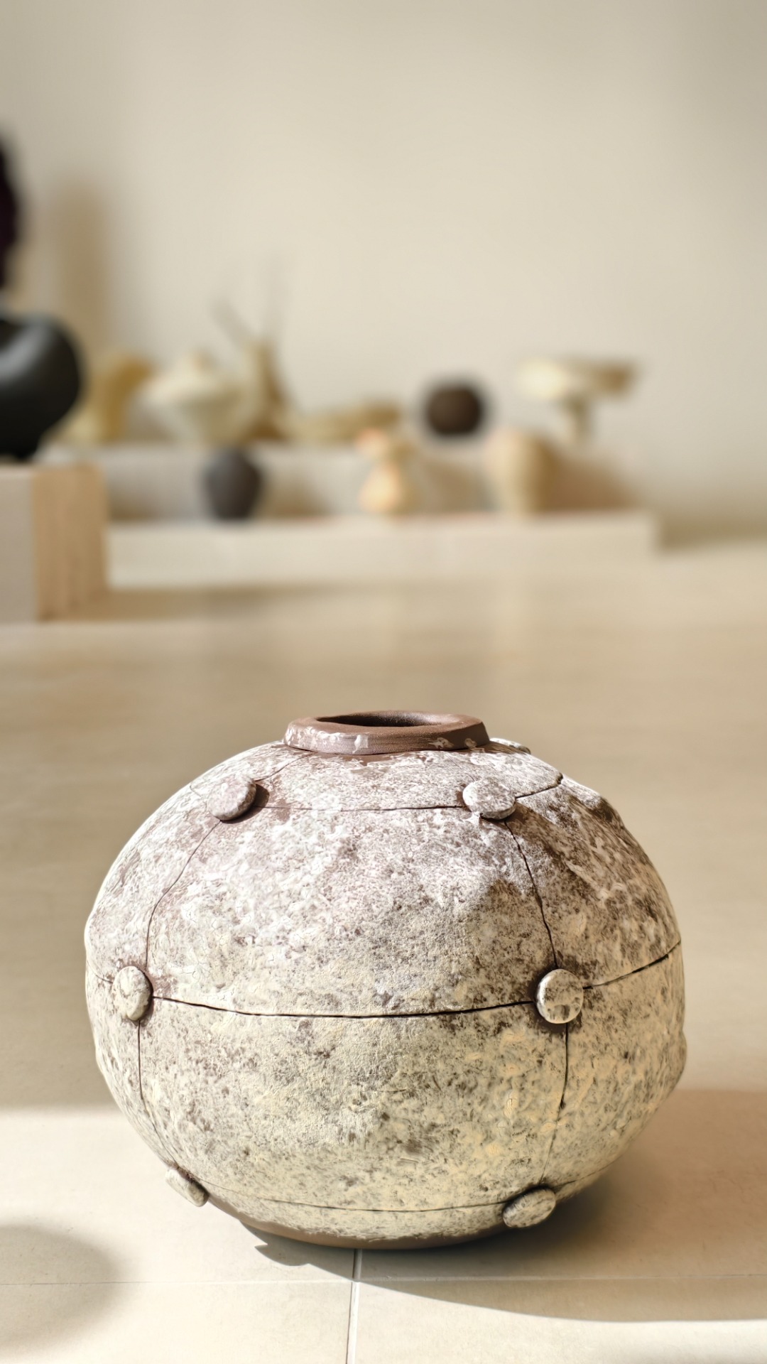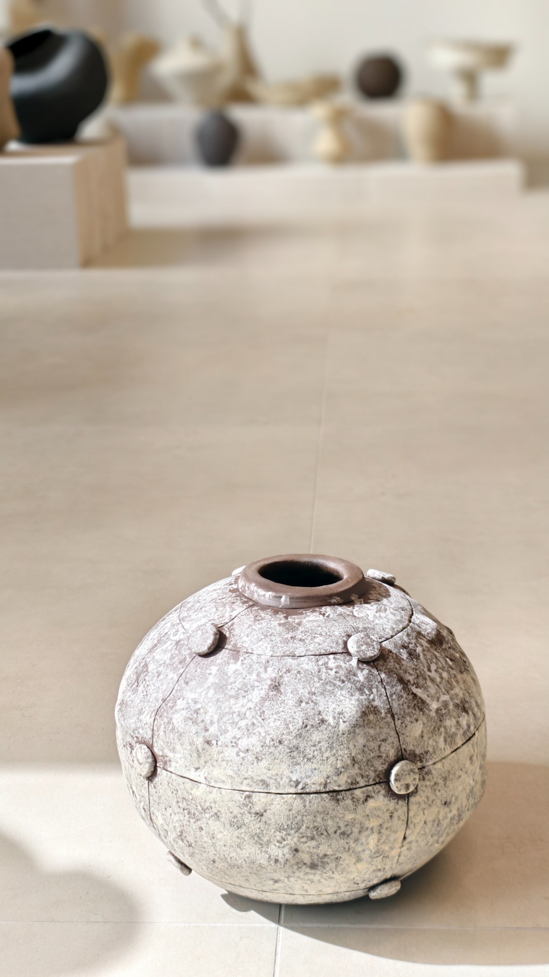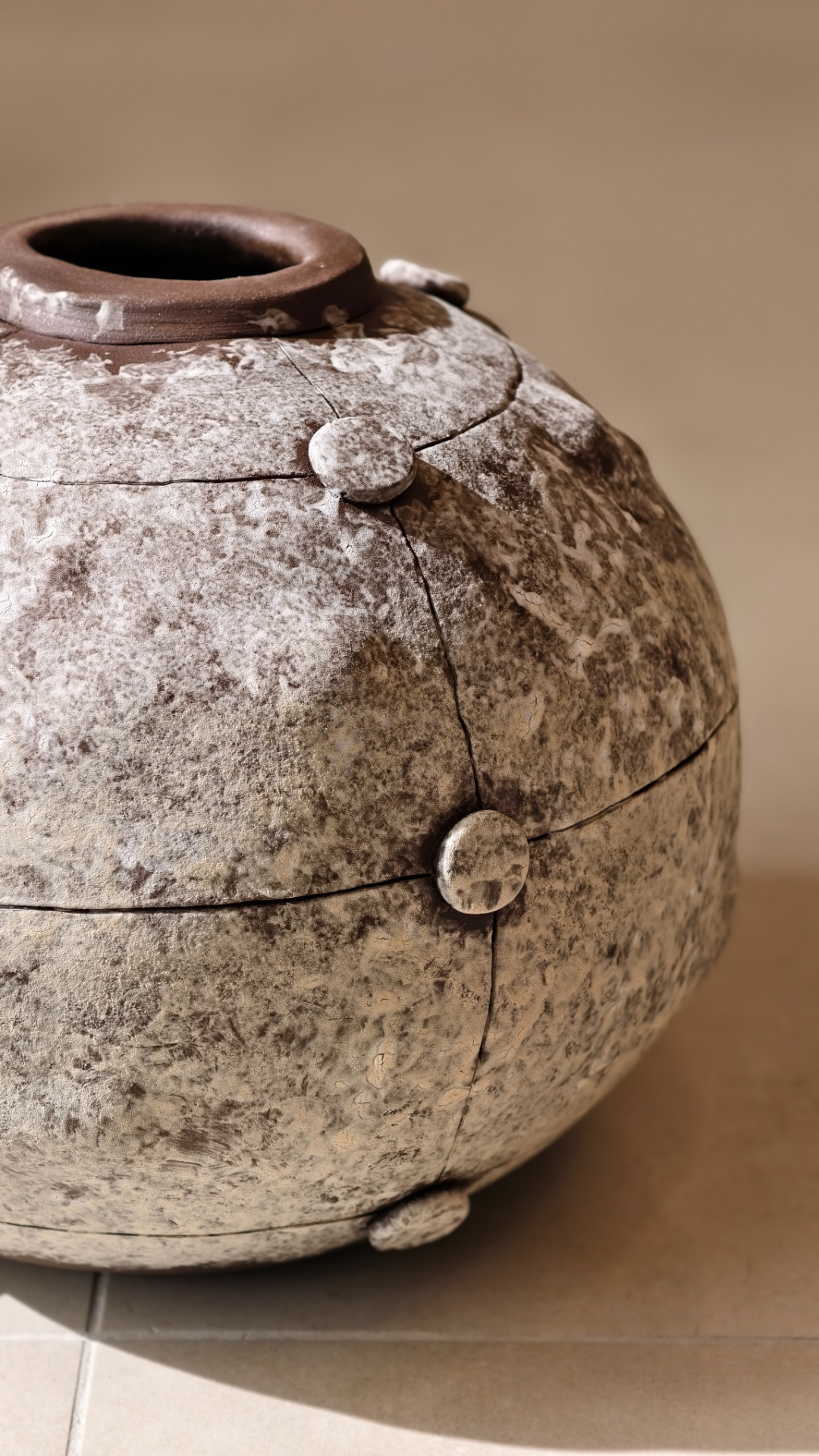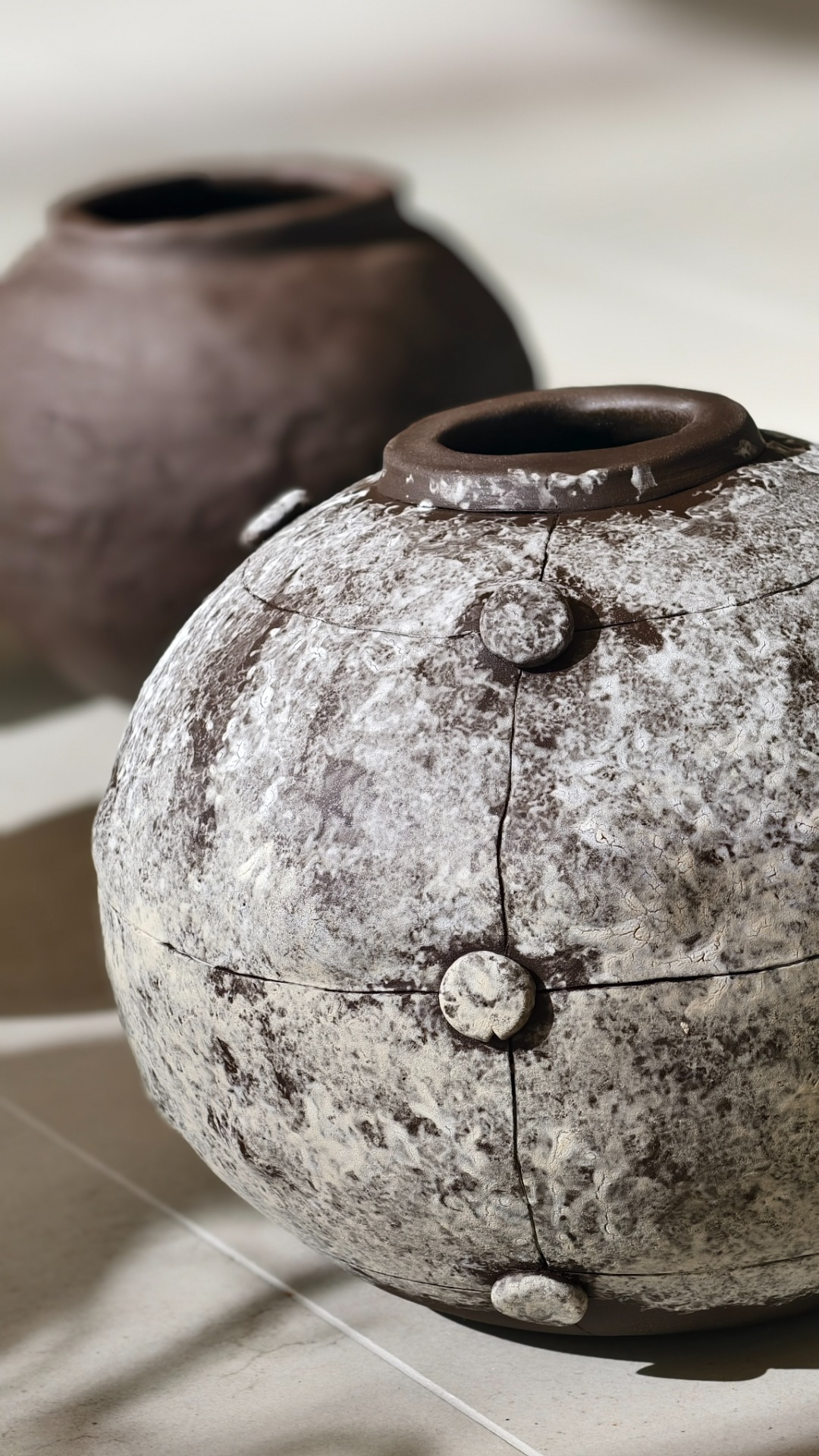 The vase is made from the black stoneware with a combination of two engobes on the surface.