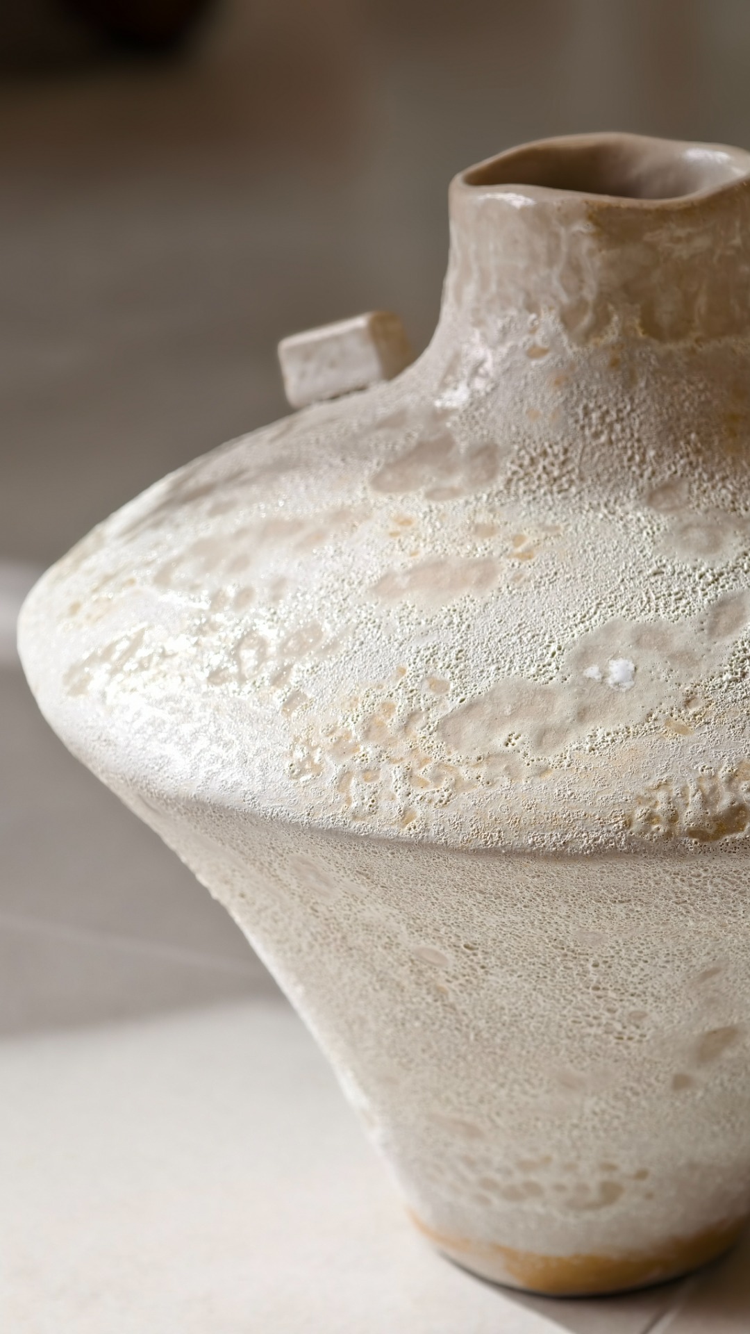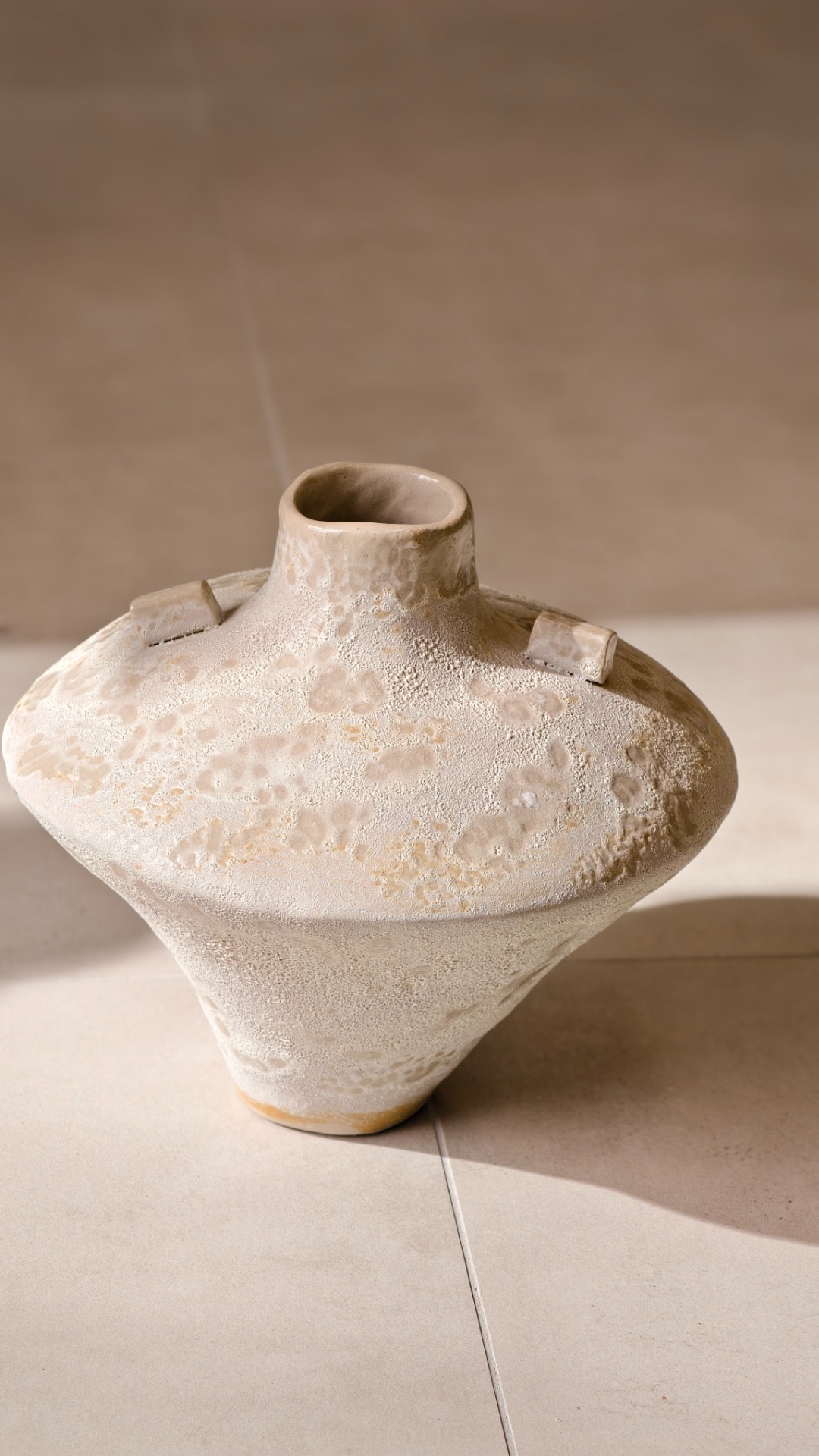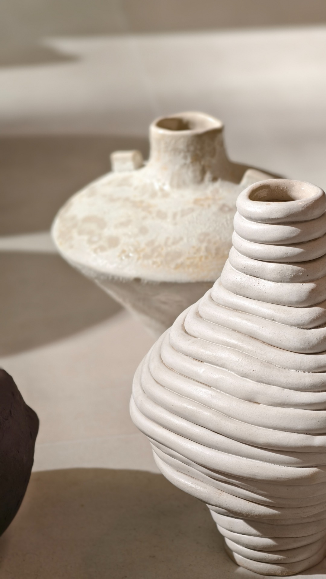 Ručne modelovaná váza z kameniny, ktorej tvar nevznikol podľa šablóny — ale podľa ruky, nálady a danej chvíle.