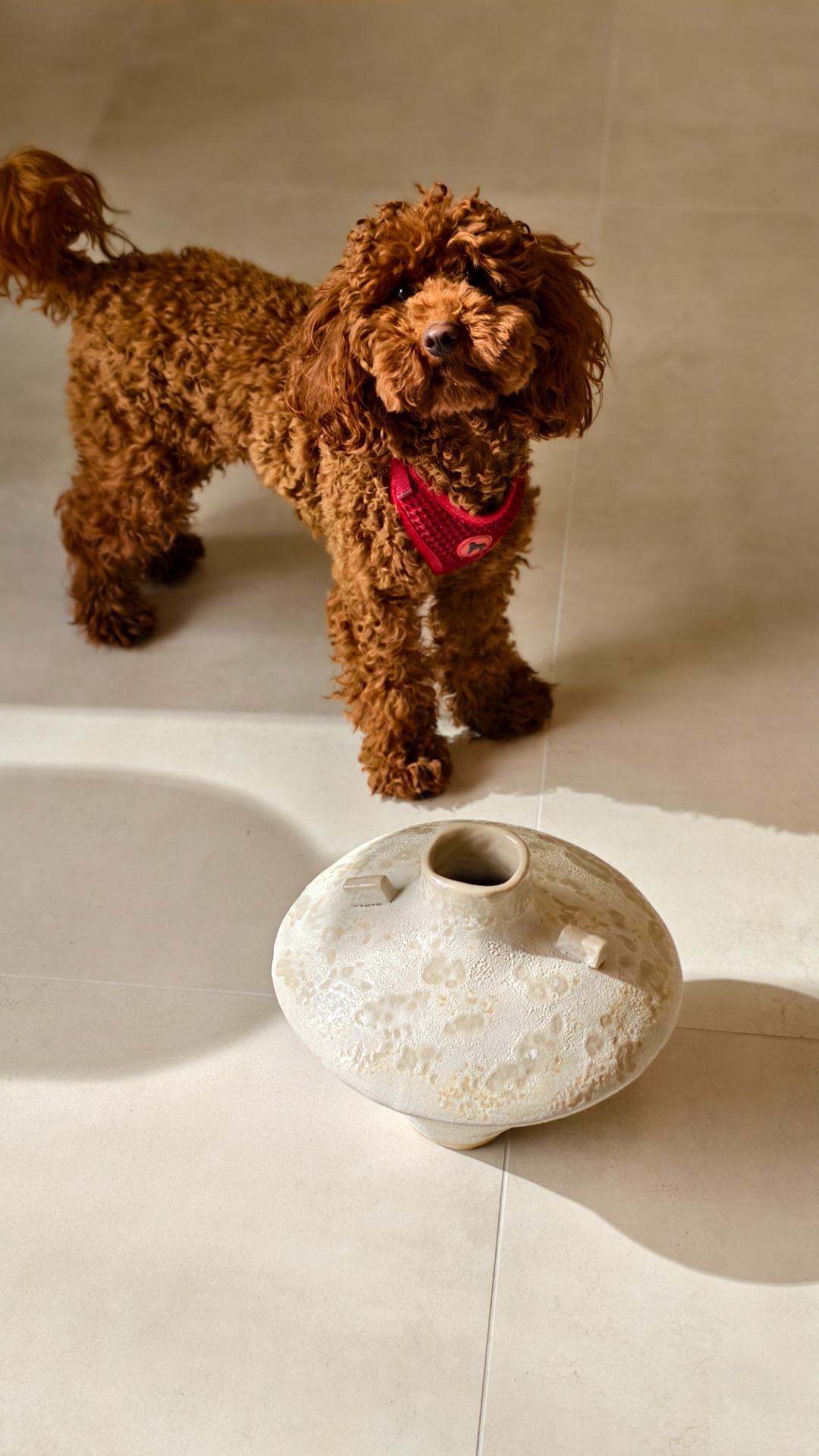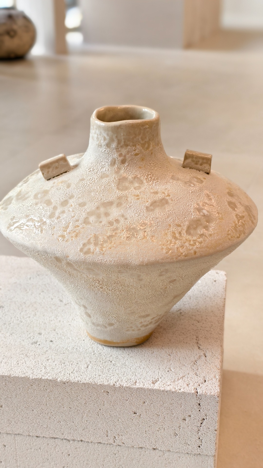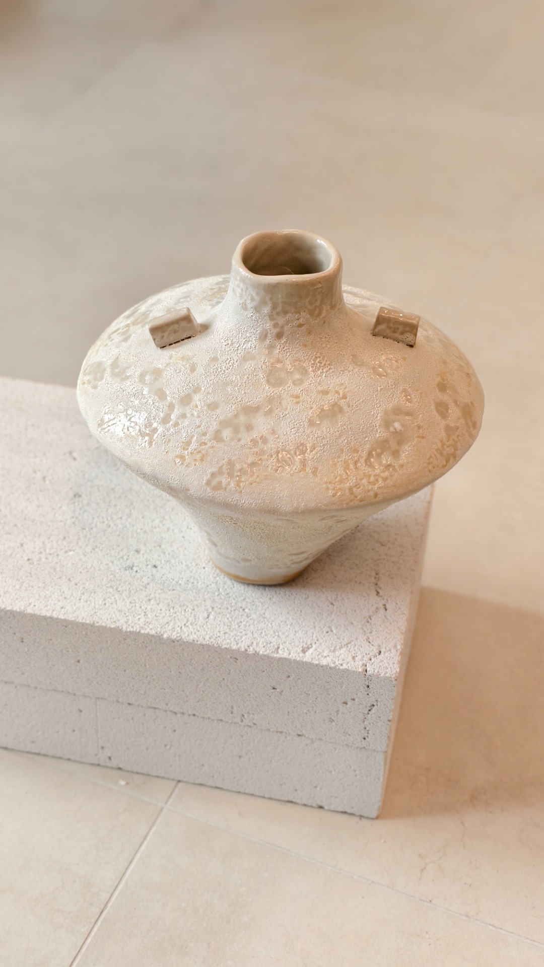 Ručne modelovaná váza z kameniny, ktorej tvar nevznikol podľa šablóny — ale podľa ruky, nálady a danej chvíle.