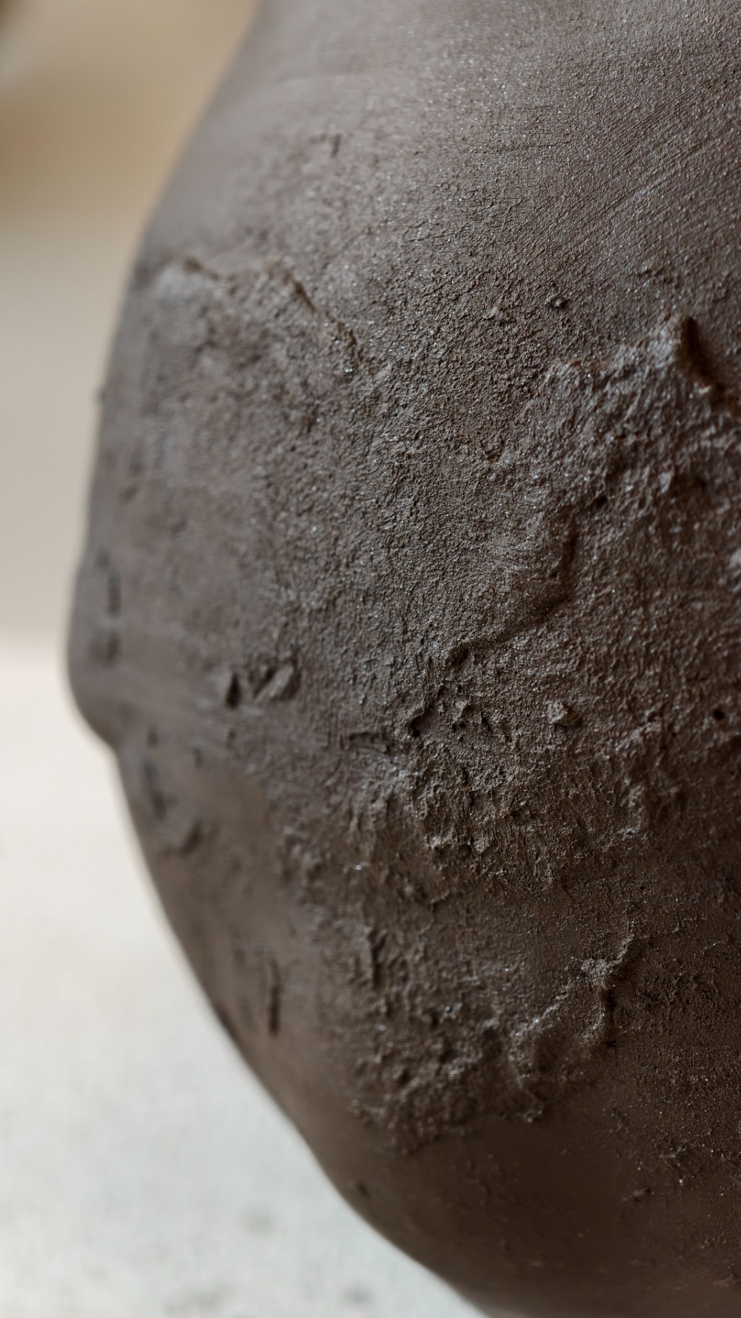 Pri výrobe bola použitá čierna kamenina, ktorá je po výpale na povrchu v surovom stave, tzn. bez glazúry, čím podčiarkujem jej prirodzenú krásu bez dodatočných úprav. Povrch má zaujímavú štruktúru.