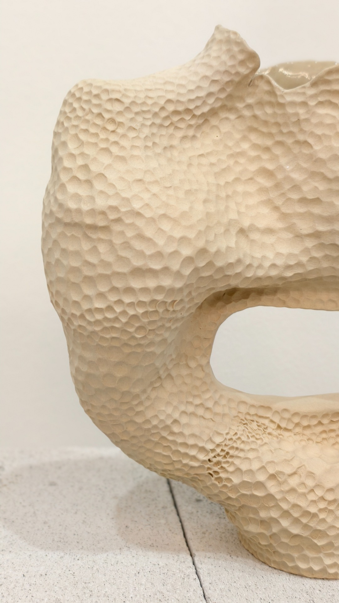 Pri výrobe bola použitá svetlá kamenina, ktorá je aj po výpale na povrchu v surovom stave, tzn. bez glazúry, čím podčiarkujem jej prirodzenú krásu bez dodatočných úprav.