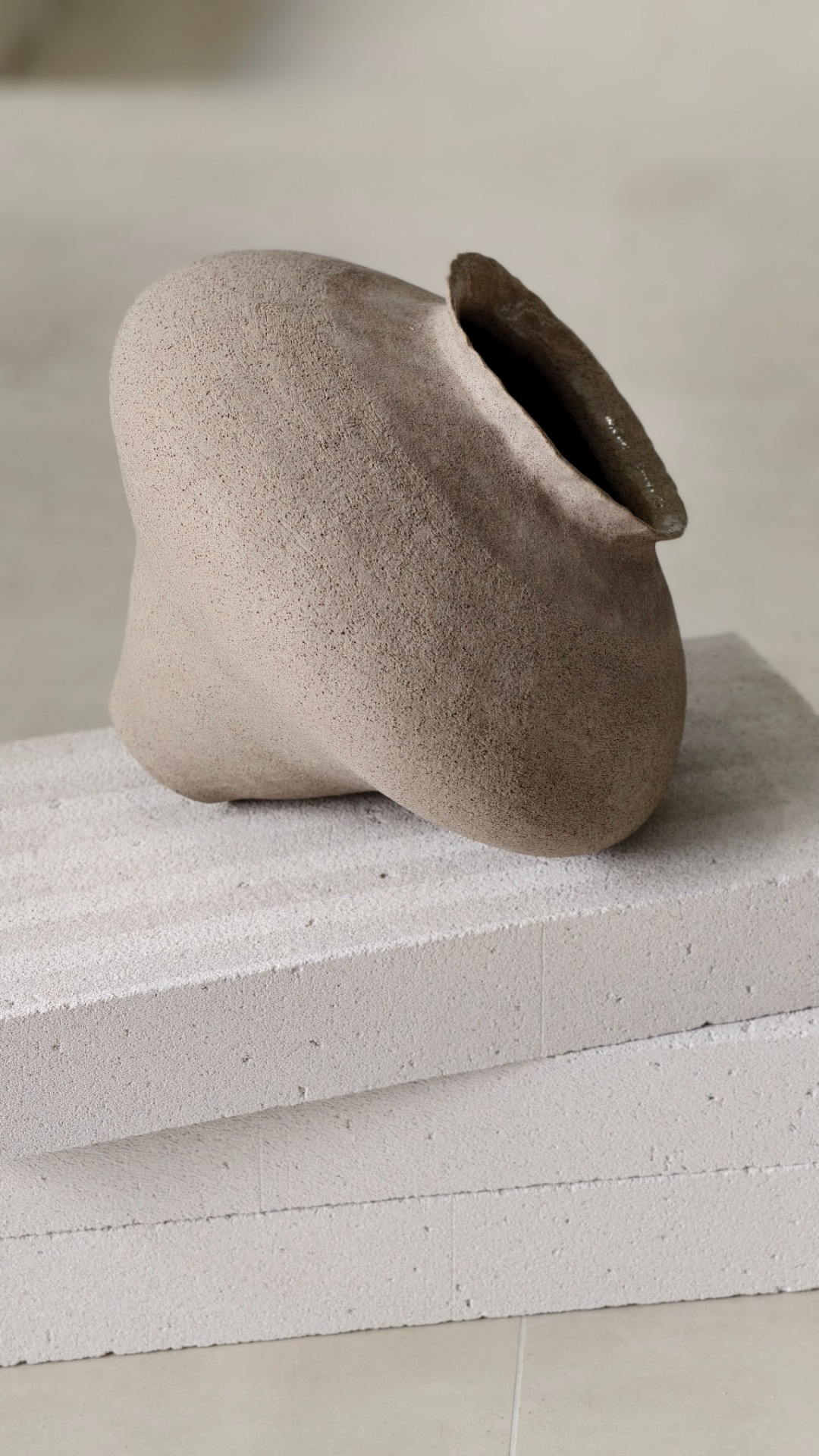 Ručne vymodelovaná váza, ktorá je svojou štruktúrou vhodná ako dizajnový doplnok do interiéru.